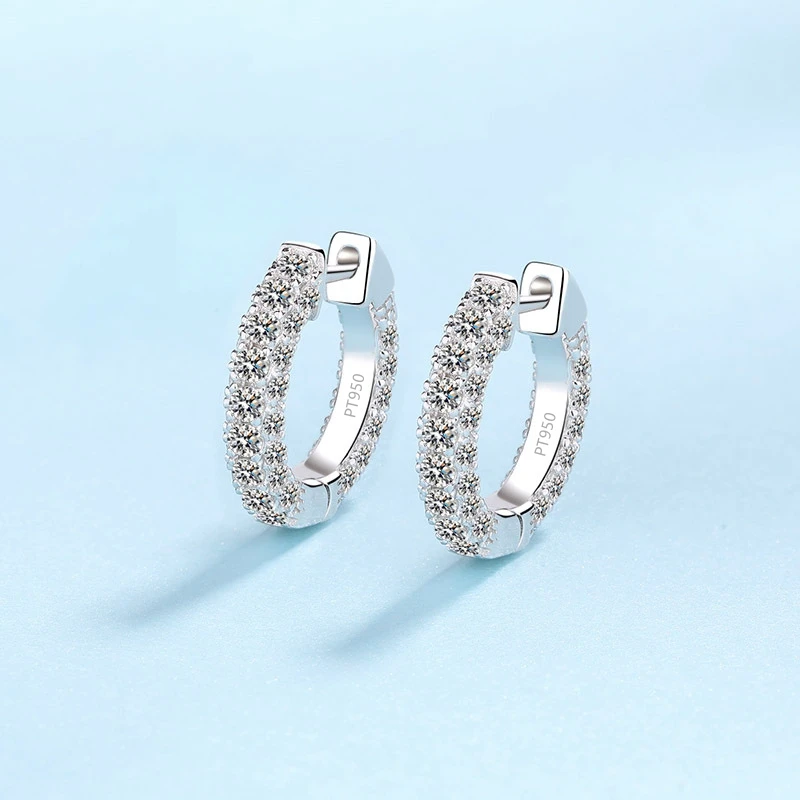 PT950 Platinum Moissanite Diamond Hoop Earrings – 1.92CT Women’s Fine Jewelry