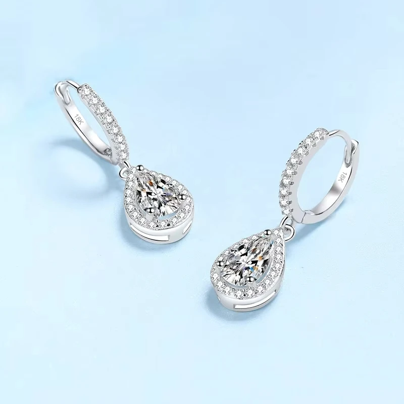 18K White Gold Water Drop Moissanite Diamond Earrings – PT950 Platinum Women’s Fine Jewelry