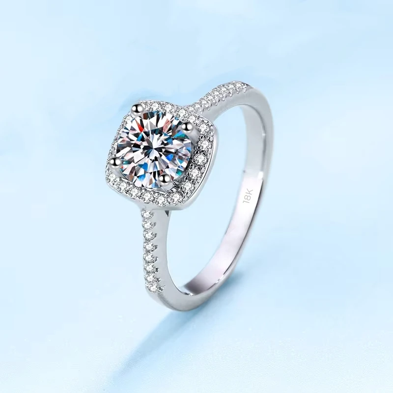 18K White Gold Four Claw Inlay Moissanite Diamond Ring – Elegant Women’s Fine Jewelry
