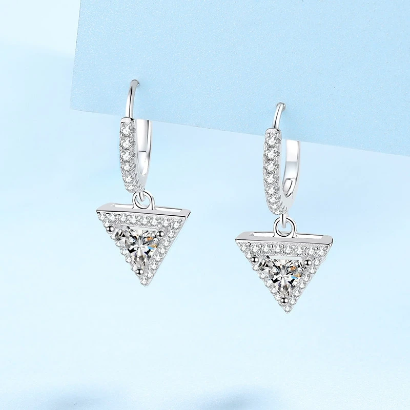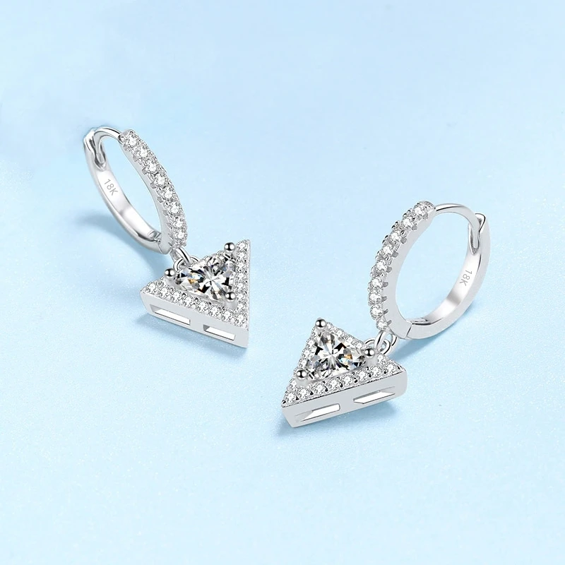 18K White Gold Platinum PT950 Triangular Drop Earrings with Moissanite Diamond