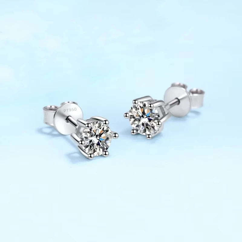 Platinum PT950 Moissanite Diamond Stud Earrings – Elegant Wedding Jewelry for Women