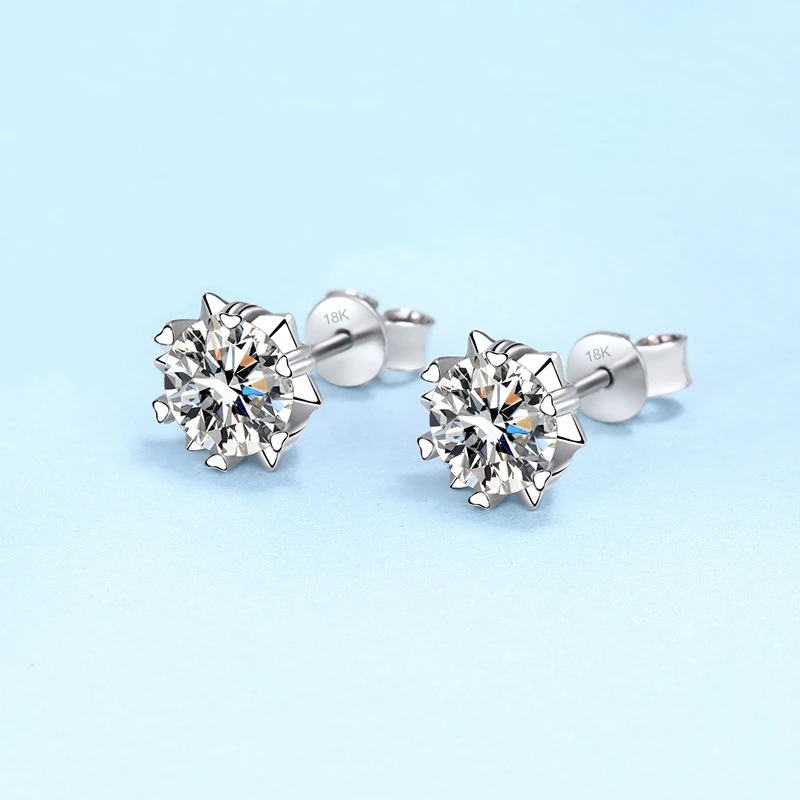 18K White Gold Moissanite Diamond Stud Earrings – Elegant Women’s Fine Jewelry
