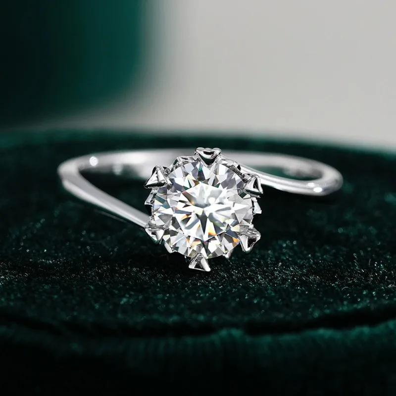 WOMEN Engagement 18K White Gold Sunflower Six Claw Wedding Band 1CT Moissanite Diamond Birthday Gift Girl Valentine's Day Rings
