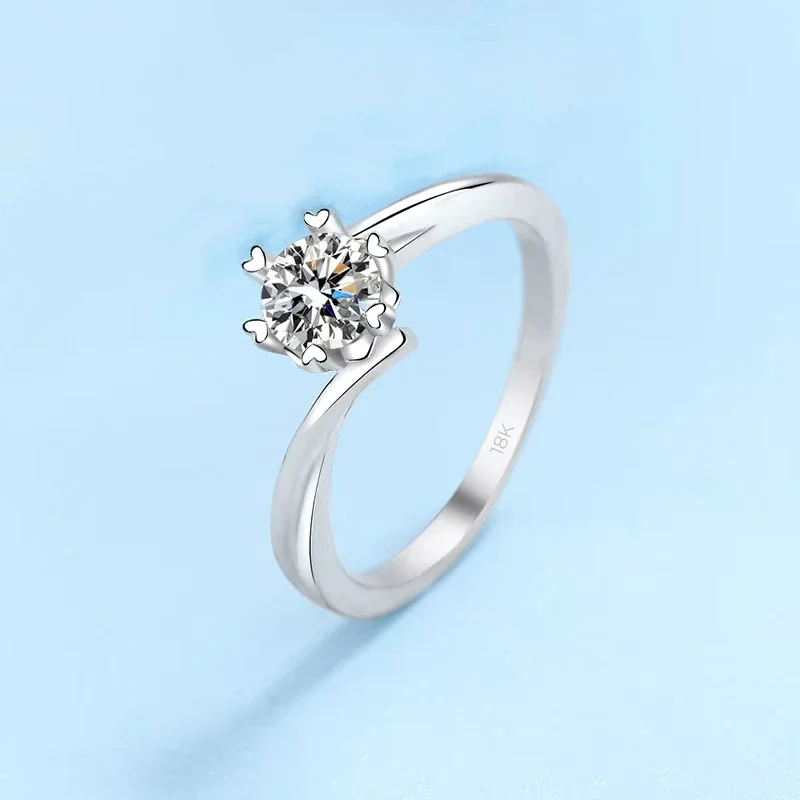 WOMEN Engagement 18K White Gold Sunflower Six Claw Wedding Band 1CT Moissanite Diamond Birthday Gift Girl Valentine's Day Rings