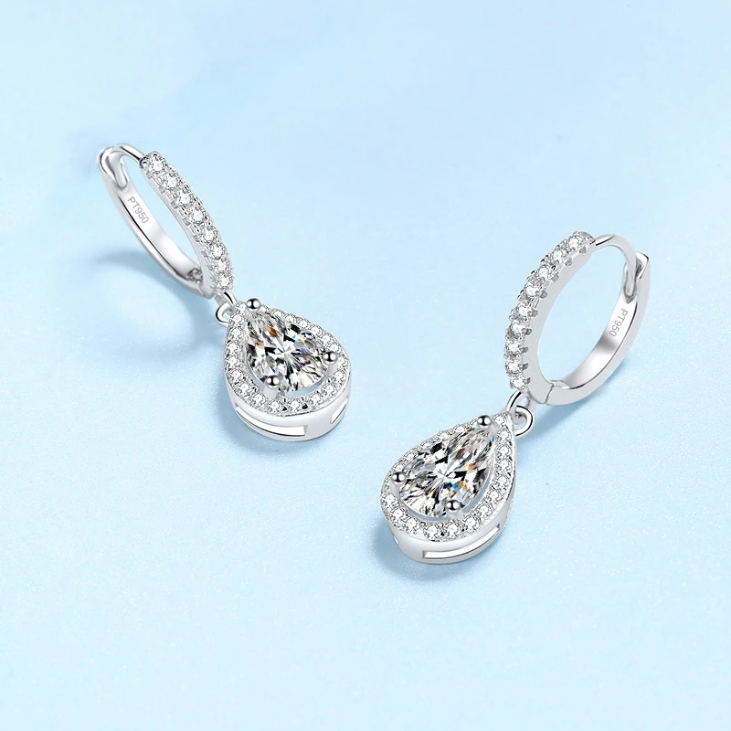 PT950 Platinum Water Drop Earrings with Moissanite Diamond