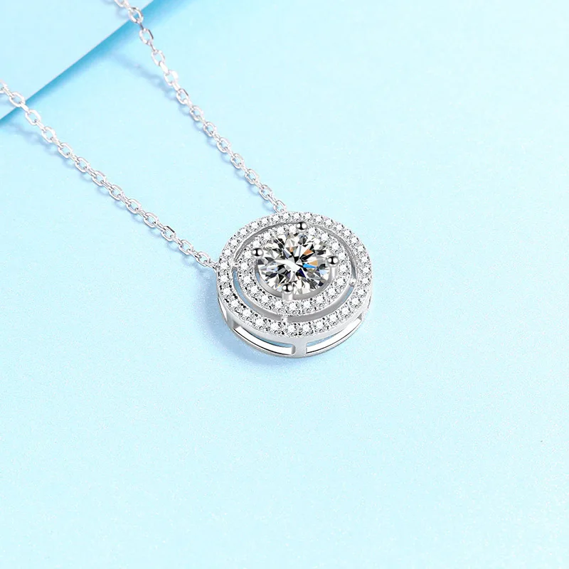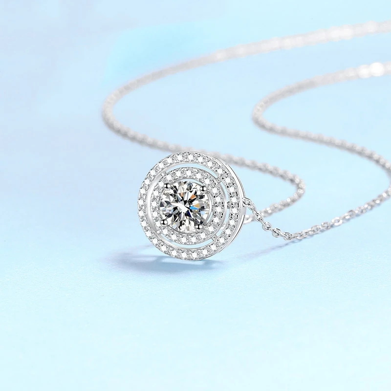 O pingente apresenta um clássico diamante moissanita redondo , disponível em 0,5 ct, 1 ct ou 2 ct . O corte redondo atemporal realça o brilho e a intensidade, tornando este colar um acessório versátil que combina perfeitamente com roupas do dia a dia e trajes formais.