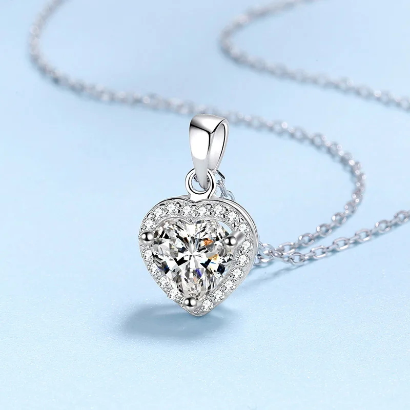 Feito em platina PT950 com acabamento em ouro branco 18K , este colar com pingente combina força, luxo e brilho. O pingente apresenta um diamante moissanita de 1 quilate em formato de coração , delicadamente cravejado para capturar a luz de todos os ângulos. Com um design leve de cerca de 2,5 g , ele se ajusta confortavelmente ao pescoço, oferecendo elegância e praticidade para uso diário ou em ocasiões especiais.