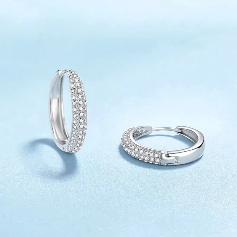 Os brincos de argola de moissanita em platina e ouro branco LILACHOMEL foram projetados para tornar cada ocasião inesquecível, combinando estilo moderno com brilho eterno.