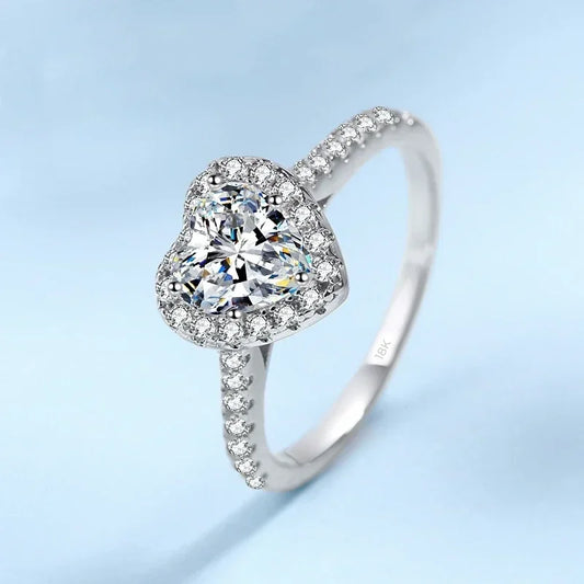 Подарок на день рождения девушке, женское обручальное кольцо из 18-каратного белого золота с муассанитом в форме сердца и бриллиантами 0,5/1 карата, платиновые кольца ко Дню святого Валентина PT950