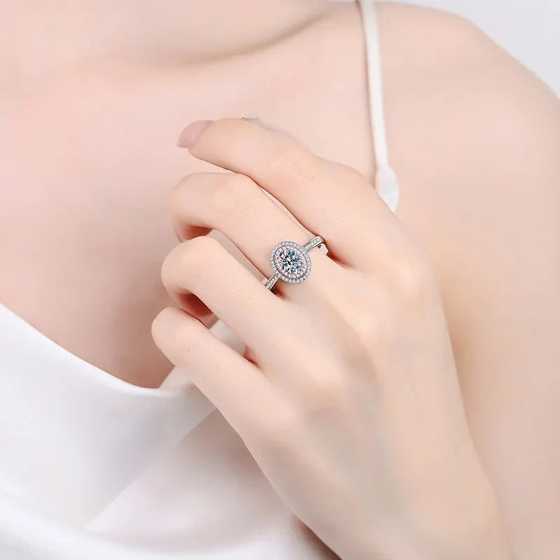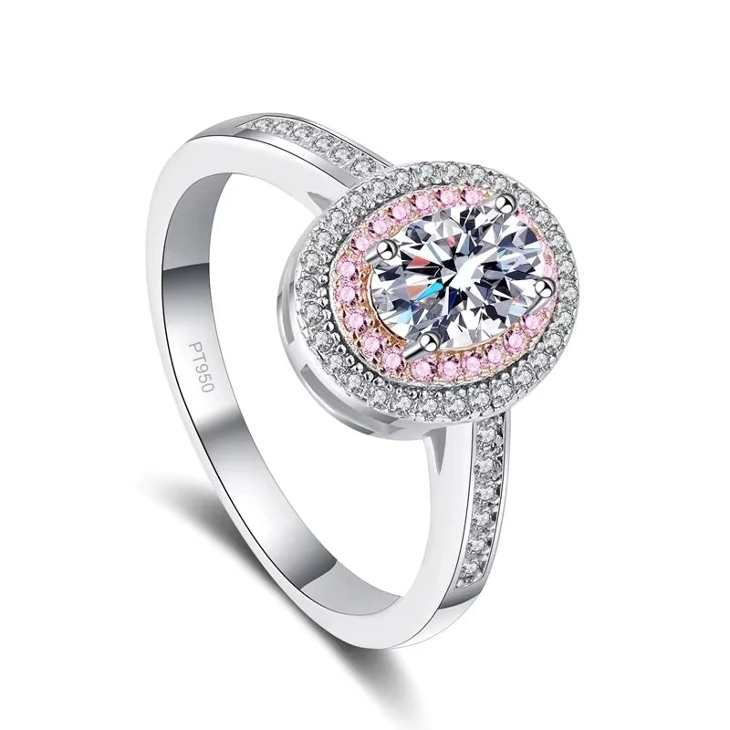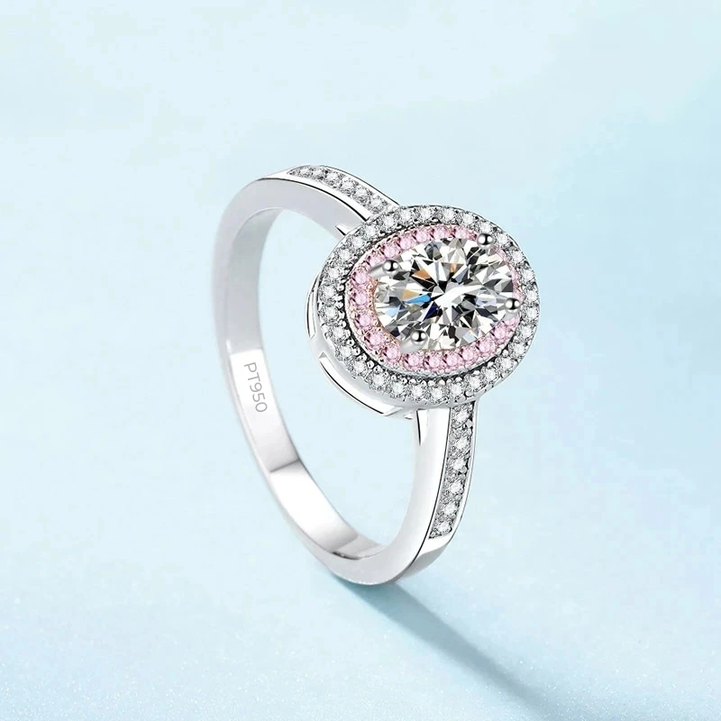 Классические женские обручальные кольца из платины PT950 с овальным муассанитом и бриллиантами 1 карат, подарок на день рождения девушке или дочери, ювелирные украшения