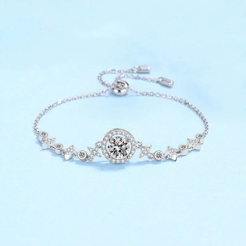 Подарок на день рождения дочери, браслеты из 18-каратного белого золота, женские свадебные браслеты с муассанитом 1 карат, бриллиантами из платины PT950, подарок девушке на День святого Валентина