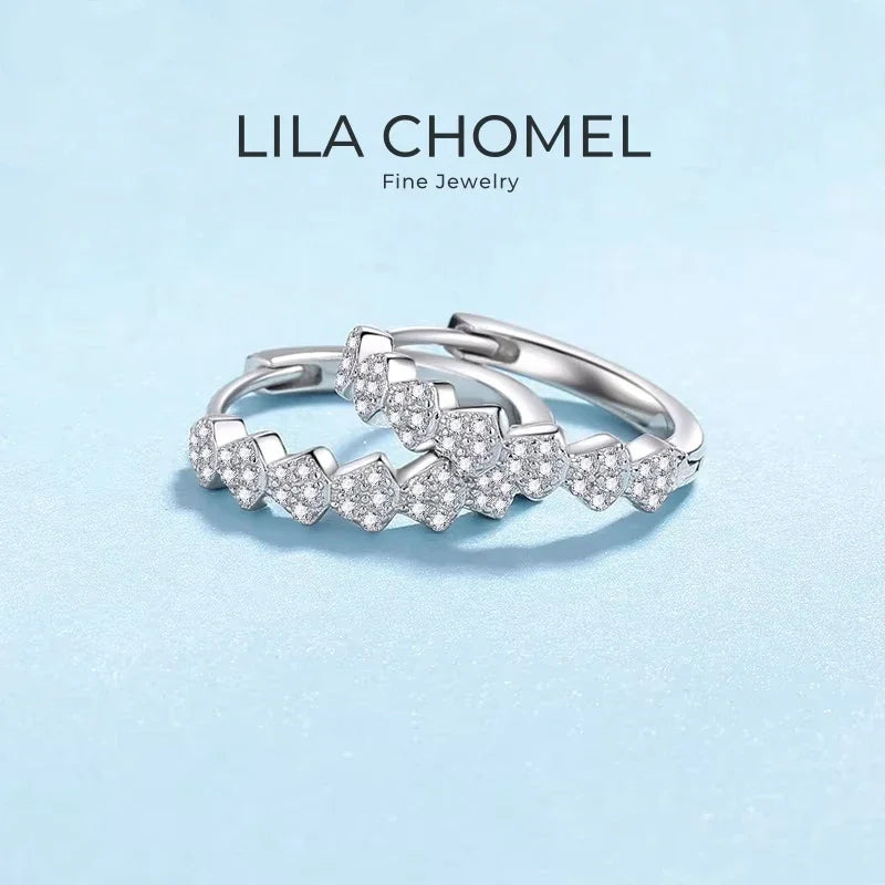 Отпразднуйте любовь и элегантность с серьгами, которые сверкают так же ярко, как и она. Серьги-кольца LILACHOMEL с муассанитами и бриллиантами — это больше, чем просто изысканное украшение, это вечный символ утонченности и нежности.